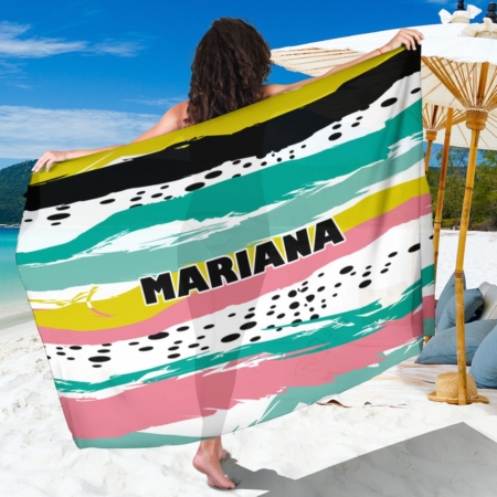 • Canga Personalizada com nome detalhe GEOMÉTRICO EM 3 CORES 90x130cm MCLISTA6
