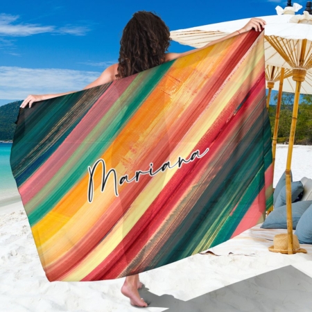 • Canga Personalizada colocamos nome detalhe listras abstratas coloridas 90x130cm MCLISTA10
