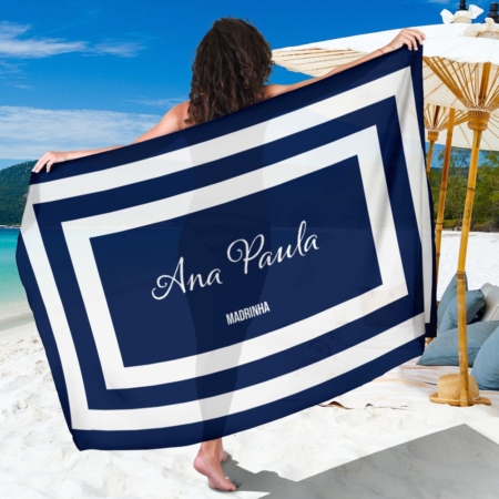 • Canga Personalizada colocamos nome detalhe retangular azul e branco 90x130cm MCLISTA13
