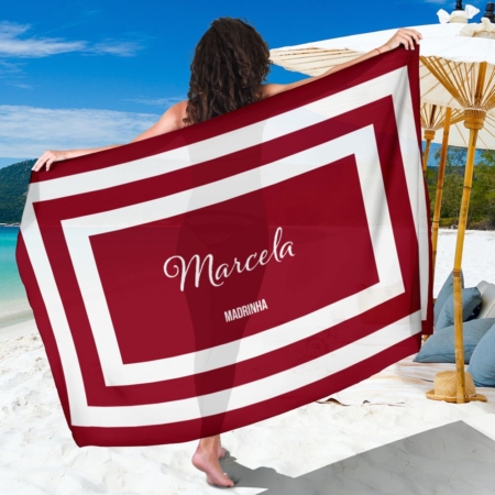 • Canga Personalizada com nome detalhe retangular vermelho e branco 90x130cm MCLISTA15