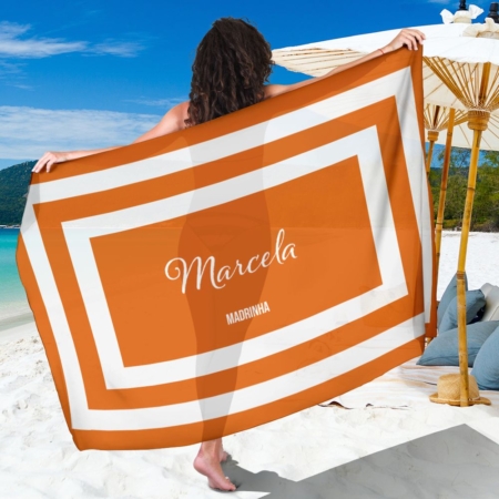 • Canga Personalizada com nome detalhe retangular laranja e branco 90x130cm MCLISTA16