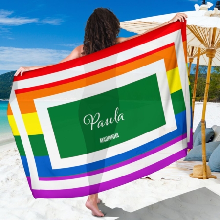 • Canga Personalizada com nome detalhe retangular arco íris LGBTQI+ 90x130cm MCLISTA17