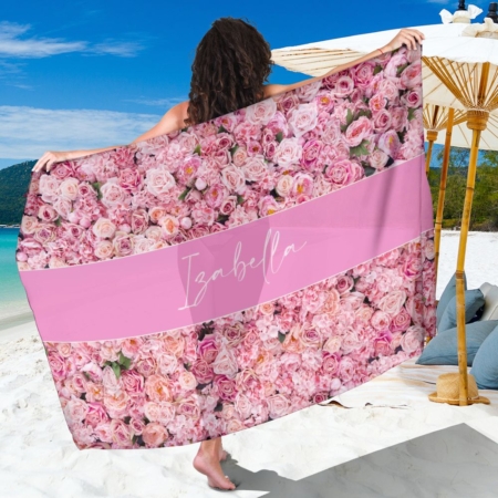 • Canga Personalizada com nome ornamentação floral de rosas 90x130cm mcf1