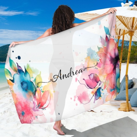 • Canga Personalizada com nome aquarela floral 90x130cm mcf5