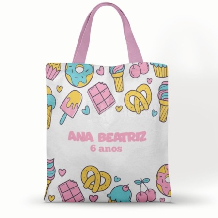 • Ecobag 20x30cm Doceria Sacolinha de Surpresacom alça e tecido Poliester para Lembrancinha