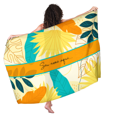 • Canga Com Nome Personalizado Saida de Praia Folhagem 25