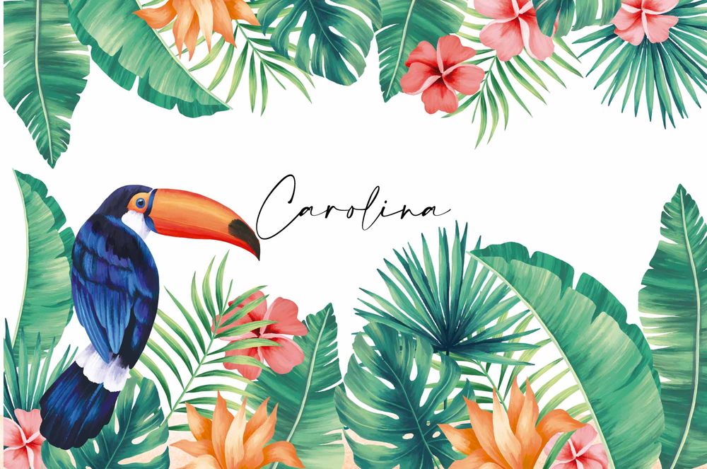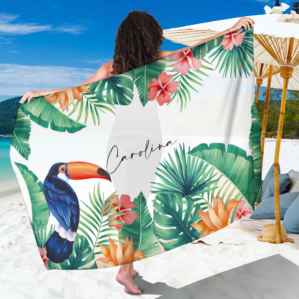 Canga Personalizada floral aquarela tropical com tucano colocamos seu nome 90x135cm mcf10