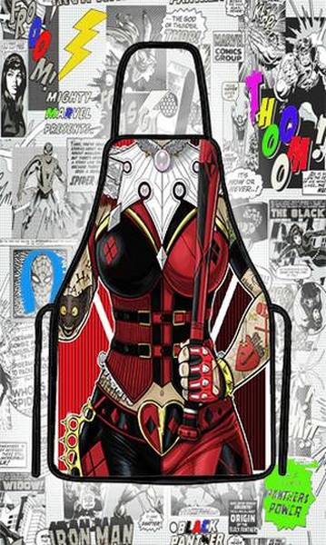 Avental divertido Arlequina para churrasco e fantasia