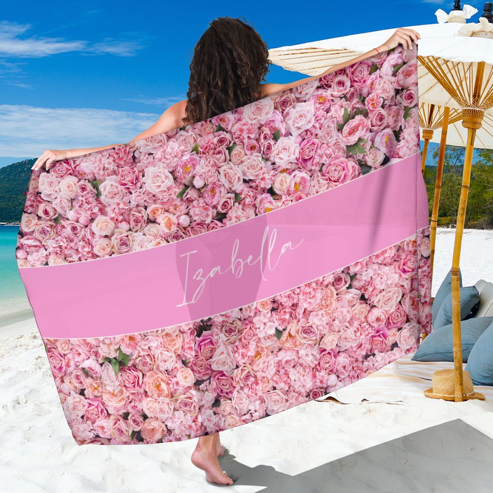 Canga Personalizada com nome ornamentação floral de rosas 90x130cm mcf1
