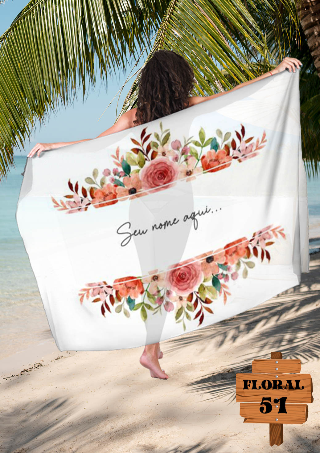 Canga Floral Personalizamos com nome 90x135cm FLORAL51