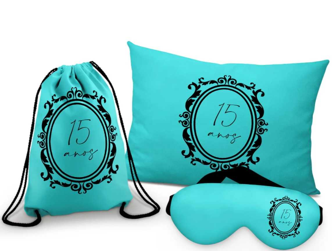 Kit Almofada + Mochila + Máscara de Dormir - PersonalizadoPerfeito para presentear ou para uso pessoal!
