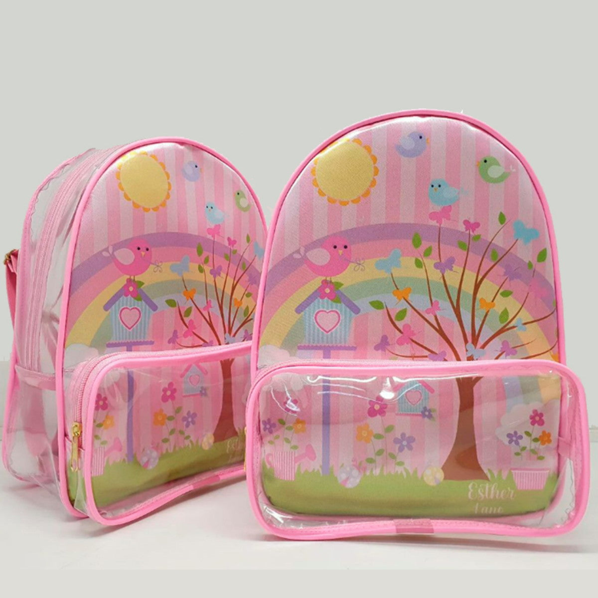 Escolha o tema da sua festa ou evento e crie uma mochila única que combine com o seu estilo. A parte lateral e traseira em cor lisa complementam o design, garantindo um visual harmonioso.