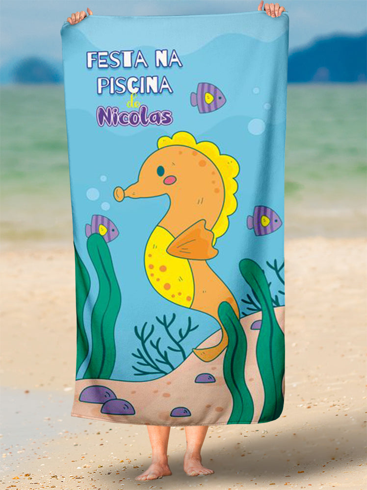 Toalha de praia Festa na Piscina cavalo marinho Pool Party Pool08